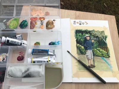 Learn to use gouache paint on paper. Gouache is an opaque paint when dry, like acrylic paint, but it can also be used wet, like a watercolor paint. We will do a series of small paintings in this class.